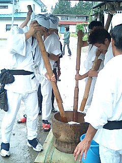 ▼かっきり祭りで餅つき