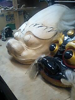 この獅子は目と鼻のバランスがポイントで、目玉が飛び出てるため彫り込みを想定し制作しなければなりません。経験が必要です。