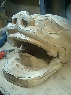 更に顎を彫り進みました。このタイプの顎の合わせ方は微妙で、口を開閉する支点棒の部分の作り方が難しいのです。慎重に悩み悩み調整…