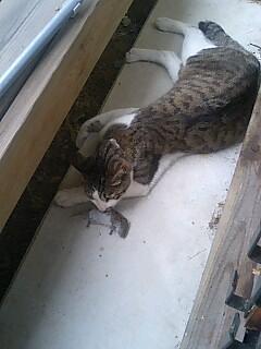 また黒如朗(くろにょろぅ 親父の気分で勝手に名前が変わります)がチュウ太郎を捕まえました。ほっとくのだけは止めてください!