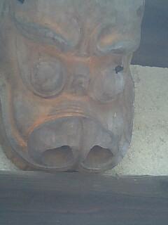 玄関先のしくじり獅子に熊ん蜂が獅子彫りをしております。