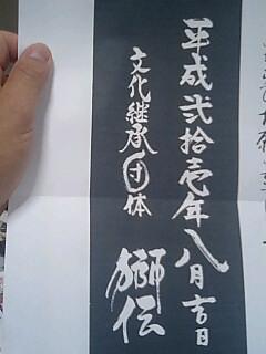 獅伝の頭に了承を頂き送付いたしました。