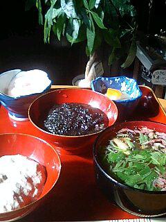 雑煮と胡桃と胡麻餅を戴き力餅です。