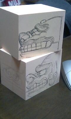 届いた原型材料の樹脂のブロックに下絵を描いてみました。