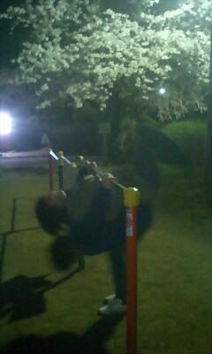 ▼花見で鉄棒