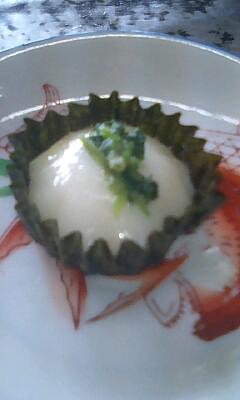その海苔に餅を入れピリッとした葉ワサビのおひたしを乗せました。