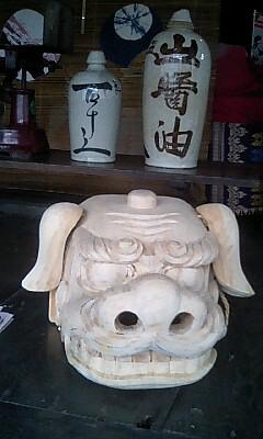 試しに獅子頭の木地をこちらの板の間に置いてみました。