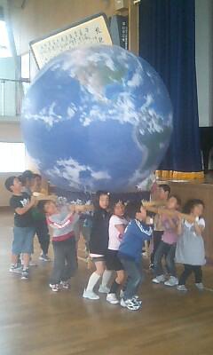 みこしに地球バルーンを取り付けてみました。