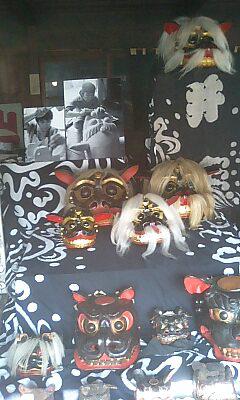 獅子宿に展示していた獅子頭のコレクションと制作中の獅子頭です。