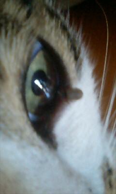 ▼猫の目の下に何やら妖しいポチッ