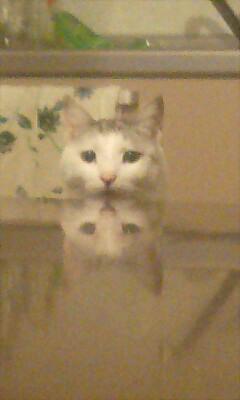 猫が夕飯のおかずに反応しテーブルの上を伺っています。