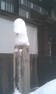 九センチ角の柱に雪が降り積もり雪が造形した像を見つけました。