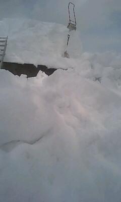 明日の自宅の小屋の雪下ろしのために梯子を運び
