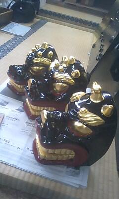 モデルの古い獅子頭と比べ余りにきらびやかな仕上がりに