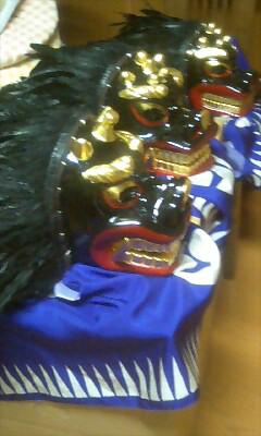 元の獅子は幕と獅子がホッチキス状の金属針で固定されていました。