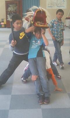 珍しく相撲役のR君も獅子で警護がかりの稽古・・