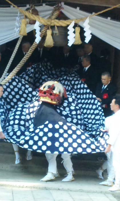 日曜日の鮎貝八幡神社の獅子舞の写真であります