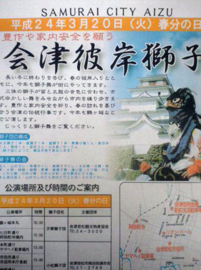 ご覧のように3月20日春分の日、福島県会津若松市で彼岸獅子が