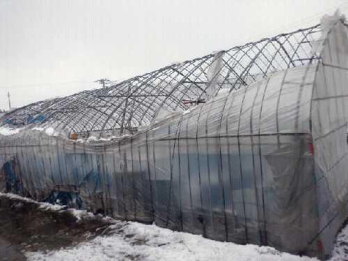 今年の豪雪で鉄骨と擦れて小さな破けが発生しました