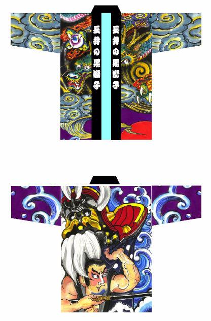 のぼりのデザインをもとに半纏を制作しています