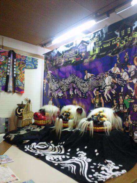 黒獅子のぼりのタペストリーも展示しておりますのでタス物産館へ