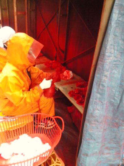実は花笠踊りの笠に取り付ける花を塗装中