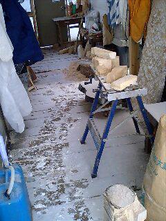 ▼吹雪で工房内も雪化粧