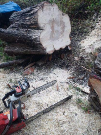 丸太の太さに対して、自前のチェーンソーのバーの短さに戦意喪失して