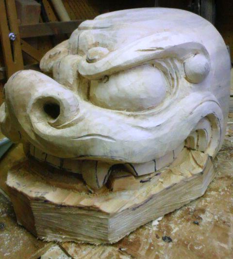 寒くなり獅子彫りはかどります