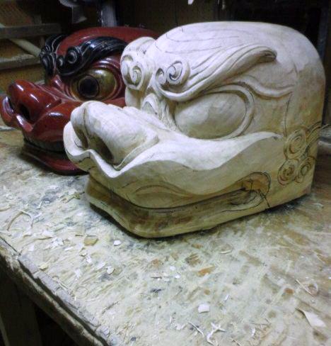 ざくっくりとした彫りですが、高度な技術を駆使した獅子