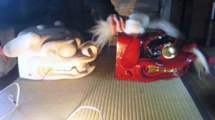 大風吹く中・・選挙を済ませ獅子頭の調査に同行しました