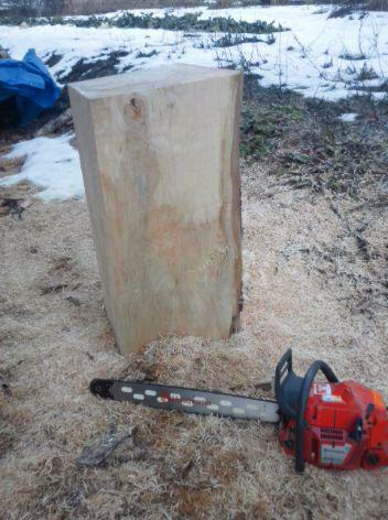 チェーンソーで丸太を角材に製材しました