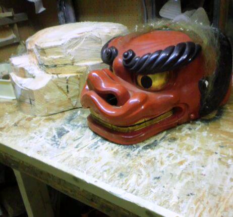 お借りした獅子をモデルに制作を開始しました