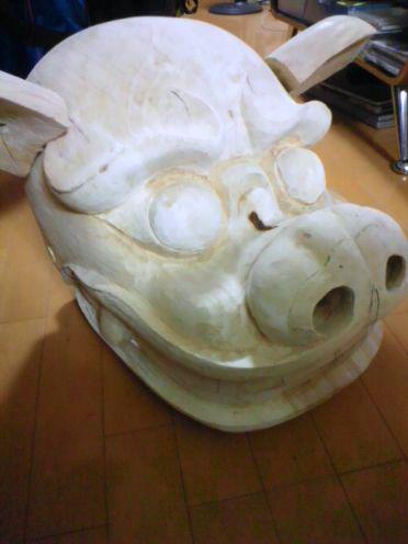 新山神社の獅子頭にと彫ってみると不具合な木地で不採用