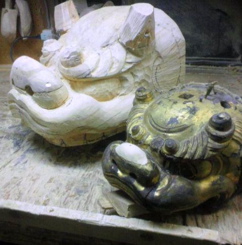 では先日オークションで落札した金獅子を摸刻してみようと制作開始
