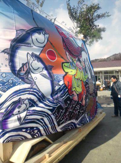 ▼山車幕見て牡蠣小屋へ