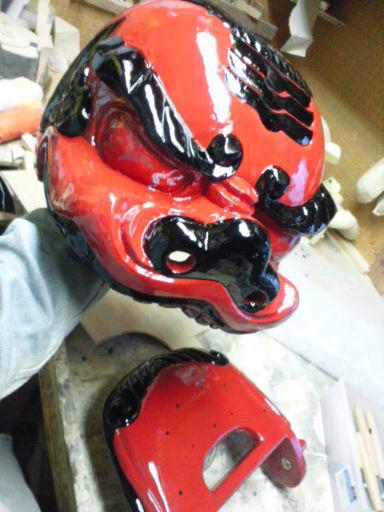 二三日前から宇津権九郎一対型のうちの雌獅子のカシュー塗りを進めててい