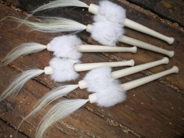 太鼓屋さんで戴いた白いウサギの皮を貼り付けました