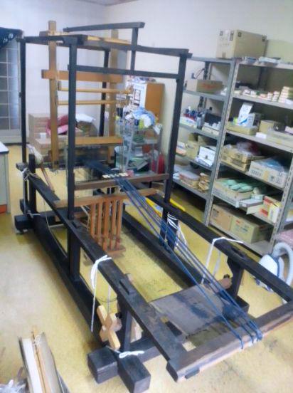 裂き織のコースターを織る仕掛けがそのまま有り、その道に詳しい知人に
