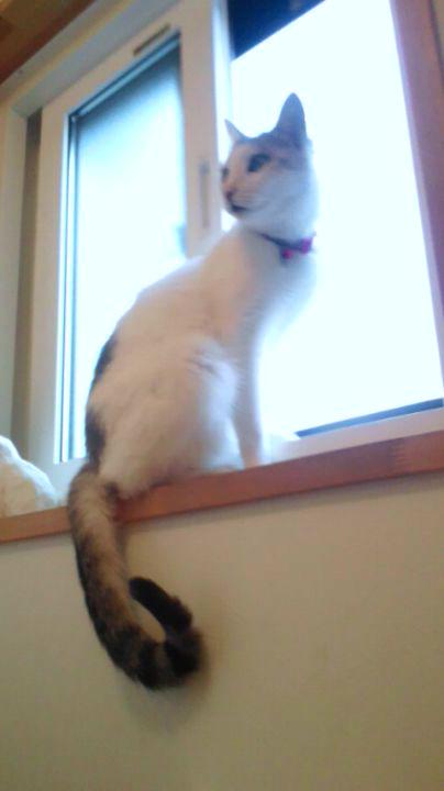 朝から何やらトイレの窓から梅雨空を眺めて瞑想中?