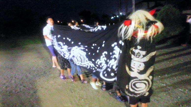 獅子舞を始め、安全とわかると幕はパンパンに膨らんできました