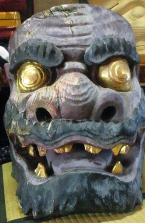 詳しくは分かりませんが塗の様子から見るとまだ若い・・・木製の鬼面と獅噛み