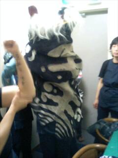 えくぼの獅子舞が28日タスで開催した吟醸酒祭りのアトラクションに獅子舞披露いたしました。出番前に気合いを入れております!獅子振りたちは左腕にそれぞれの欠点を書き入れ気合い注入しました。小柄でチョコチョコ歩く方には「大股」、獅子の顎が上がる癖のある方には「アゴ下げ」ステップに問題のある方には「一歩半」なんてね〜。みんな汗だくで会場を沸かせて戻ってきました。