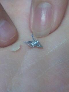 見えますか?次女が米粒みたいな鶴をおりました。こんな特技があったんですね〜!