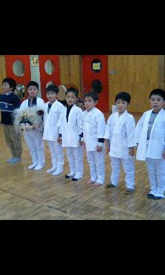 土曜日の本番の最終の稽古でした。できたてのアツラエ衣装を合わせてみました。馬子にも衣装と言いますかー孫にも衣装といった感じですが、みんな可愛いですね〜!凛々しく勇ましくも見えます。しかし!、演技が完成しないまま時間切れで終わってしまいましたー。今まで工作室の狭い場所で稽古していたせいか広い体育館でやったせいか、この期に及んですっかり忘れた子もいて唖然としてしまいました!ま〜どうにかナルでしょう!