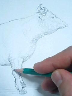 ▼牛を描いてます