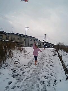 和凧でなくカイトをあげてみました。電線に絡まるのが心配です。結局手元の糸が絡まってギブアップ。知ってますか?糸が絡まったときは「ナンマイダーブツ〜ナンマイダーブツ」って唱えるとほどけるんだ、という言い伝えを教えてあげました。最近は伝統的な遊びもやりにくくなっているんですね〜。