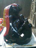 獅子頭の漆の上塗り工程です。金箔の下に塗る黄土色の箔下を塗り終わった所を見せてもらいました。室に入れて加湿機で加湿し硬化促進するのです。戸を開けると独特な臭いがムッとして鼻孔が漆カブレしないか心配になりました。私はめっぽうデリケートな肌でかぶれやすいのです。