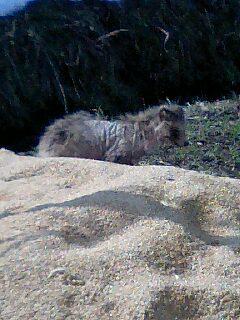 白昼こそこそ肥え塚で餌をあさってます。健全な狸は夜騒ぐものですが、この狸は道端ランチしてました。その哀れ皮膚炎狸を見て因幡の白うさぎを思い出しました。さぞかし寒かろうなぁ〜