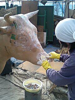 不思議と紙を貼って色が着くとリアルになるんですねー。今日は初の真冬日。寒いので貼ったところが凍結するかもしれないなぁー。いよいよ三頭目に着手しました。